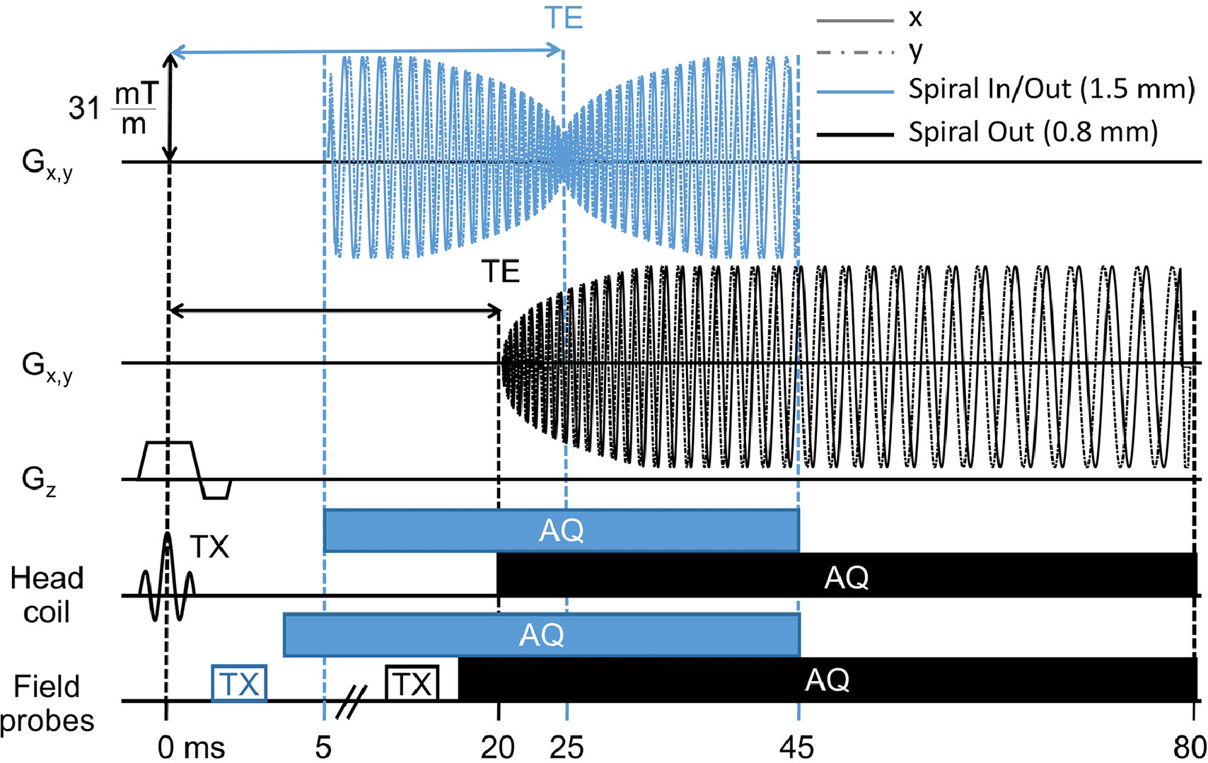Figure 1: Utilized 2D single-shot spiral acquisitions