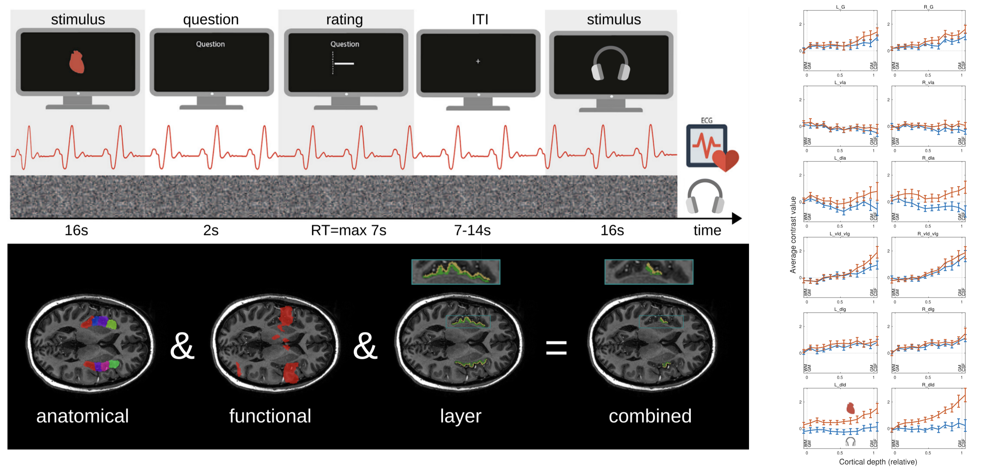 Finally, I perform the first laminar analysis in interoception. In a heartbeat attention task, I find layered differences in signal in both hemispheres of the dorsal dysgranular insula.